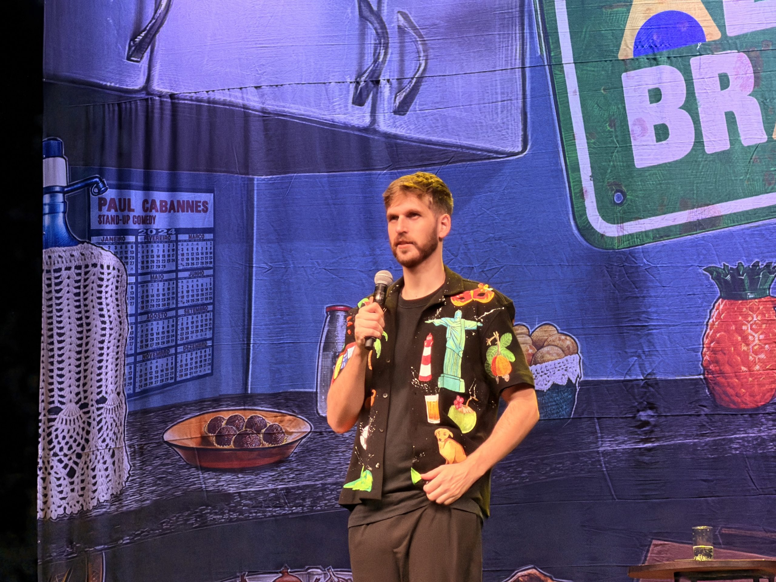 Um dos pontos mais geniais do espetáculo de despedida foi a capacidade de Paul de apontar o absurdo naquilo que o brasileiro considera absolutamente normal no dia a dia. Brincando com a flora local, o humorista relatou o pânico europeu ao se deparar com as imensas árvores frutíferas do nosso país. Em um dos momentos que mais arrancaram gargalhadas incessantes da plateia, ele relembrou o choque ao visitar o que parecia ser a escola de suas filhas e se deparar com uma jaqueira monumental no pátio.