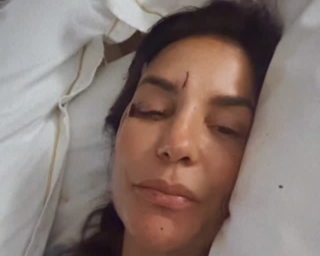 Ela apontou para o rosto no vídeo e explicou: “Tive um pequeno corte aqui no supercílio, aqui embaixo do olho… Tomei um susto grande porque apaguei, não vi como era. Foi um negócio bem agudo.”